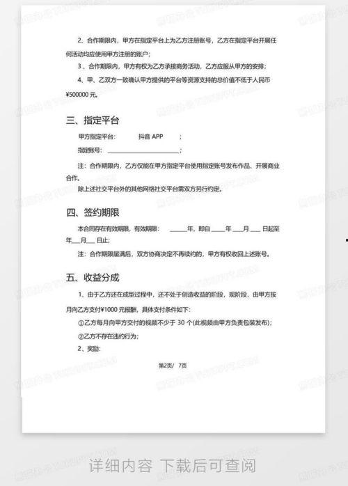 1. 合同期限:合同期限通常为几年,如2年、3年或5年不等。这个期限是双方共同商定的,也是明星未来一段时间内工作的保障。
